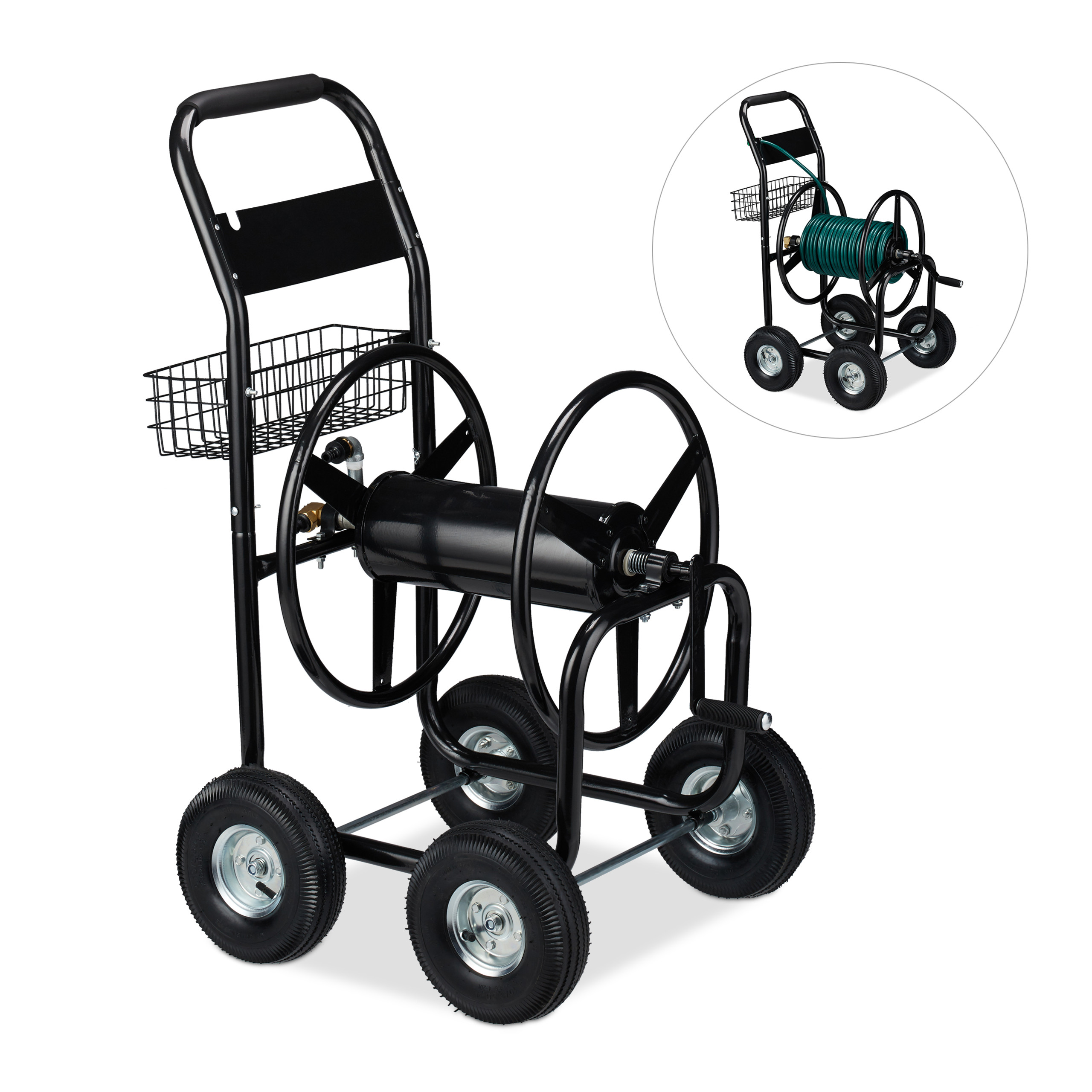 4 wheel garden hose reel cart