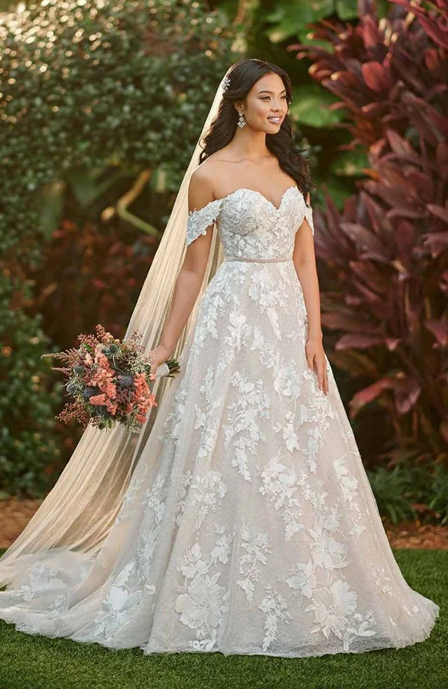 off shoulder flowy wedding dress