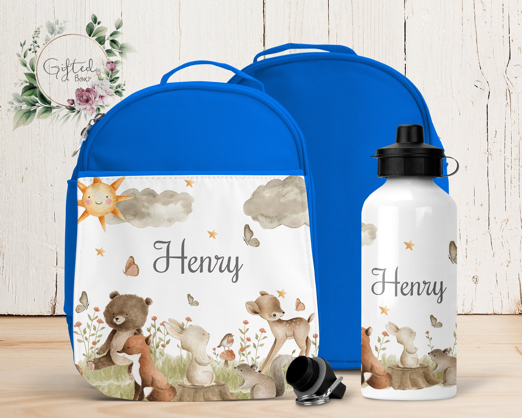 matching water bottle and lunch bag
