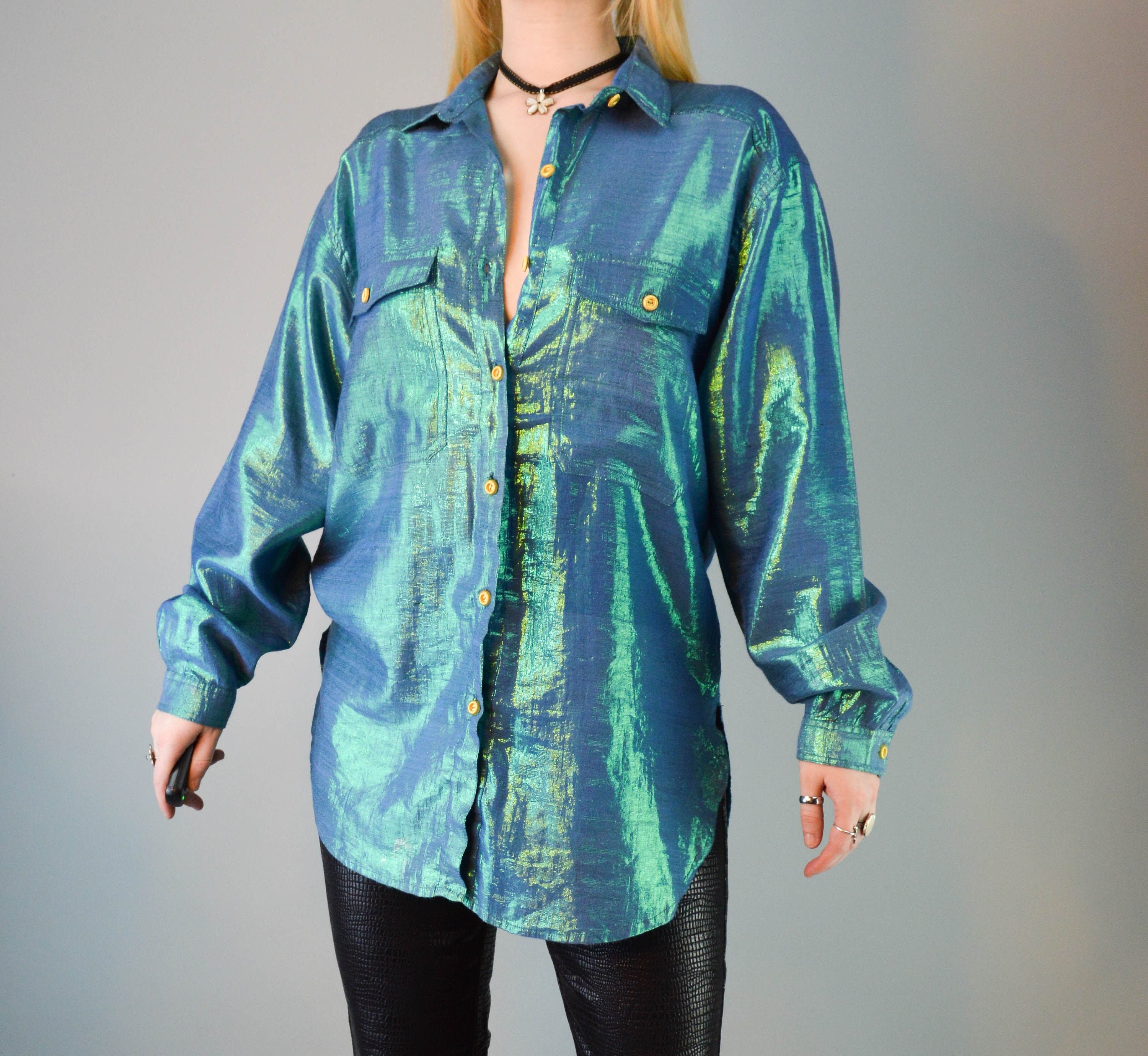 blue satin blouse womens