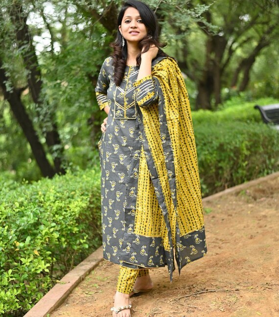 designer kurti with pant and dupatta