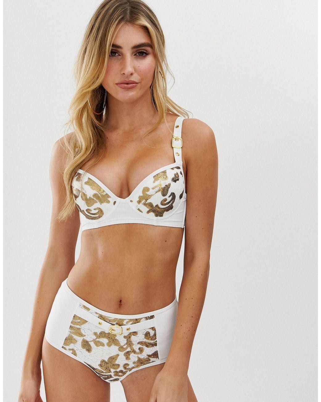 gold and white swimsuit