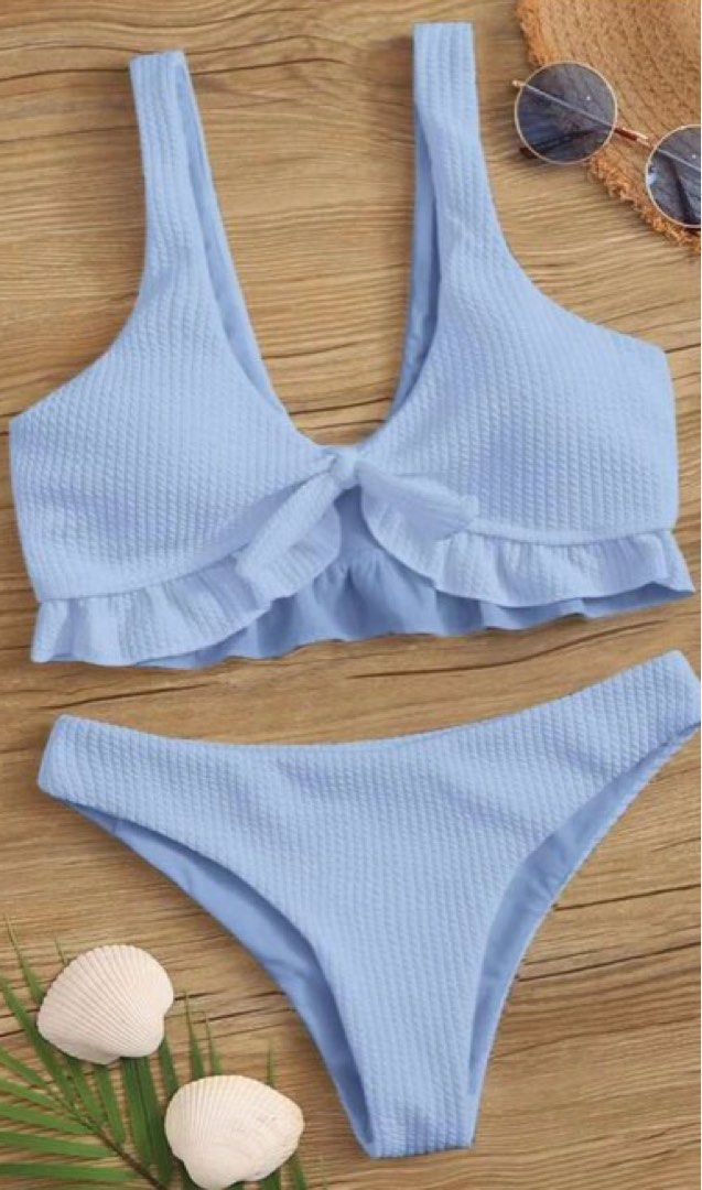 light blue and white bikini