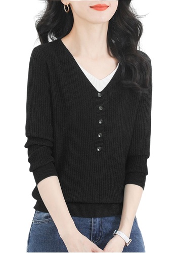 v neck long sleeve sweater