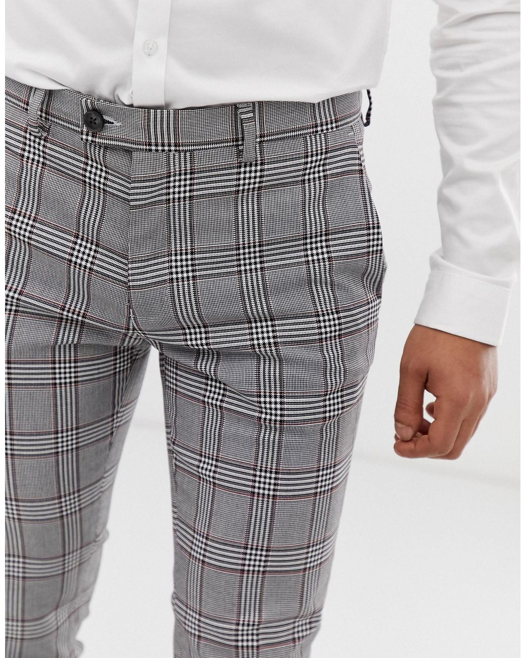 mens skinny fit check trousers